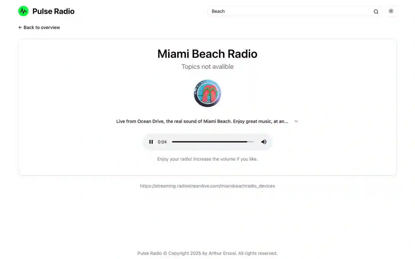Pulse Radio ist eine Web-Anwendung für Online-Radio-Streaming mit tausenden Radiosendern weltweit. Die App nutzt